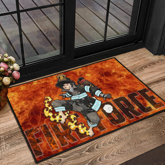 Fire Force Anime Door Mat Shinra Kusakabe With Fire Extinguisher Crazy In Fire Door Mat Home Decor