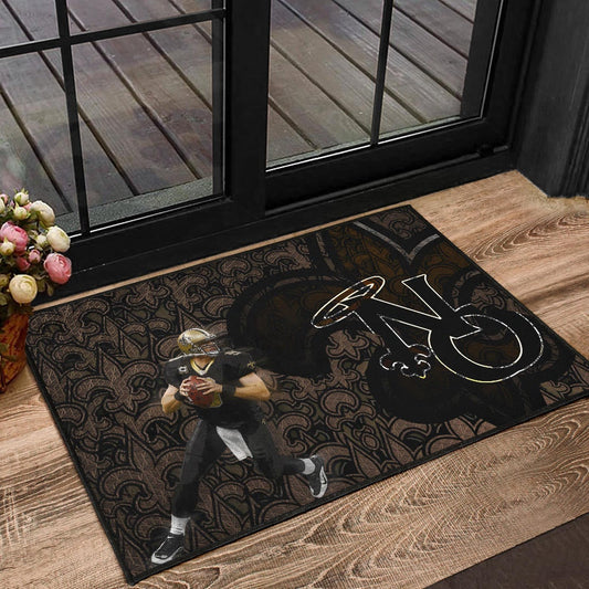 New Orleans Saints American Football Drew Brees 09 Ready To Throw Rugby Ball Saints Doodle Door Mat Home Decor