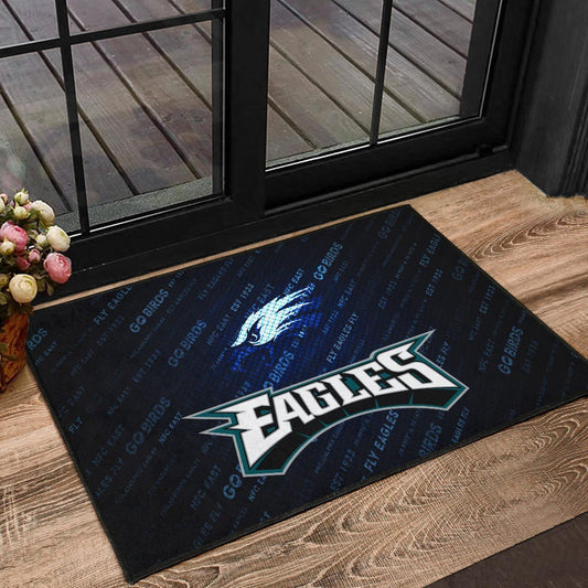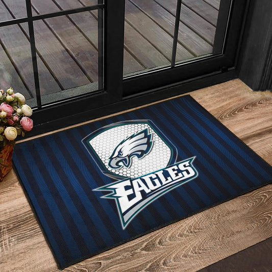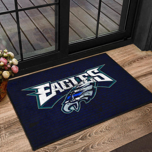 Philadelphia Eagles American Football Team Door Mat Eagle Head On The Shield Black And Blue Lines Door Mat Home Decor