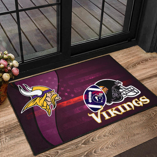 Minnesota Vikings American Football Team Door Mat Viking Head Rugby Ball And Black Helmet Symbol Door Mat Home Decor
