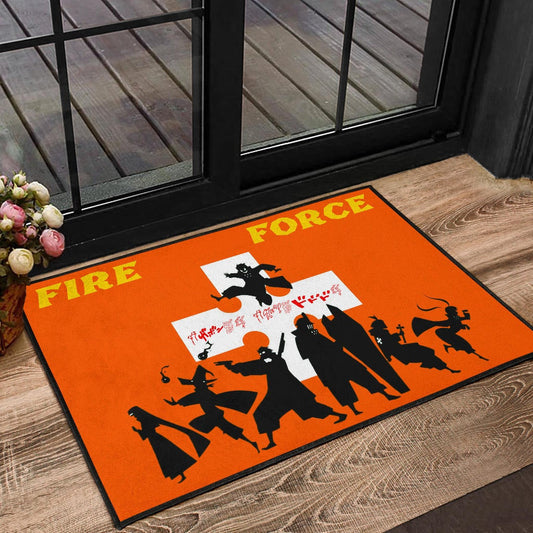 Fire Force Anime Door Mat Characters Silhouette Fighting Orange Yellow Text Door Mat Home Decor
