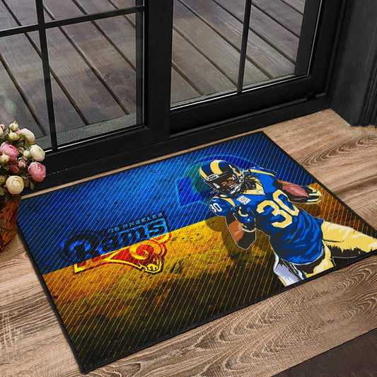 Los Angeles Rams American Football Raymond Calais 30 Grab Rugby Ball Running Blue Yellow Door Mat Home Decor