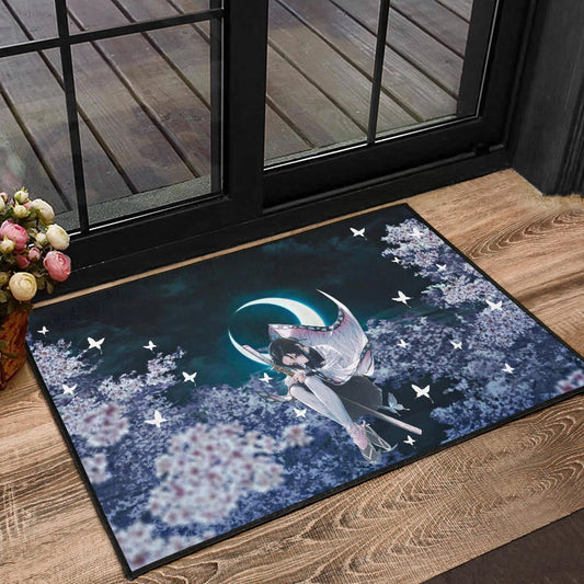 Demon Slayer Anime Lonely Shinobu With Butterflies Night Moon Door Mat Home Decor