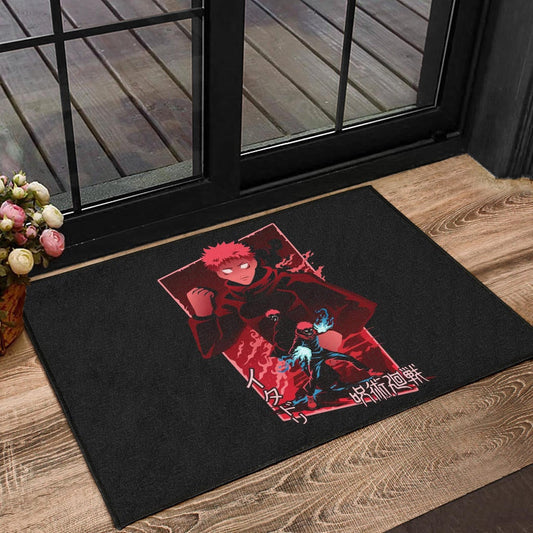Jujutsu Kaisen Anime Door Mat Sukuna And Yuji Red Shadow Power Evil Smiling Door Mat Home Decor