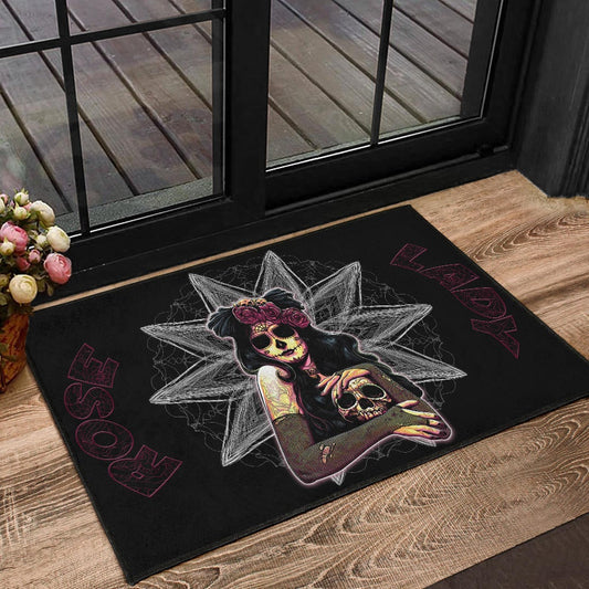 Skull Door Mat - Pretty Death Rose Lady Hug Skull Head Door Mat Home Decor