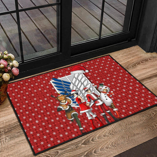 Attack On Titan Anime Door Mat - AOT Merry Christmas Outfit Santa Snowman Reindeer Door Mat