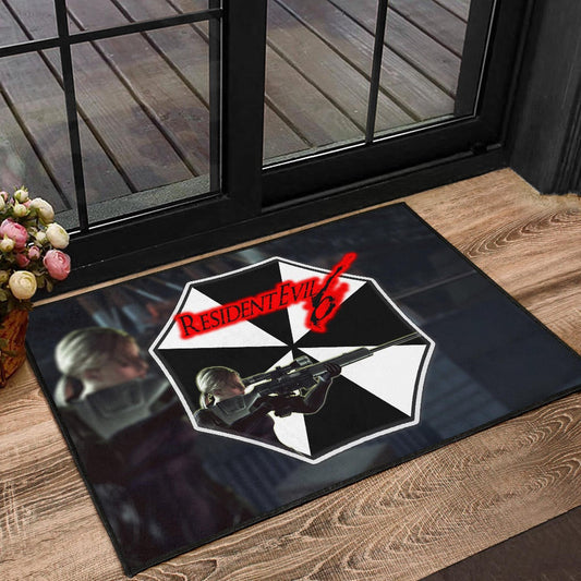 Resident Evil Game Door Mat - Black White Umbrella Corporation Blonde Girl Door Mat Home Decor