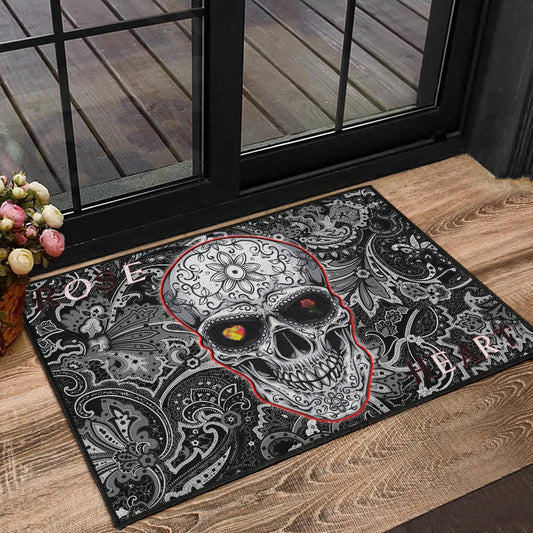 Skull Door Mat - Love In Your Bones Funny Skull Emotions Patterns Valentine Door Mat Home Decor