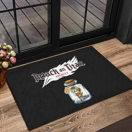 Attack On Titan Anime Door Mat - Mikasa Ackerman In Jar Bottle Trap Door Mat Home Decor