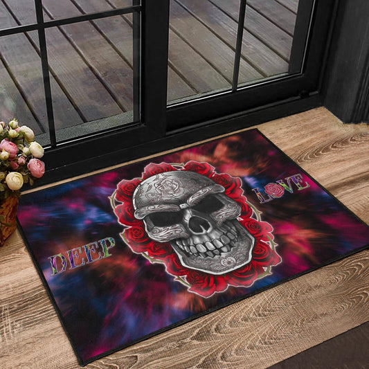 Valentine Door Mat - Red Rose Tattooed Skull Deep Love Door Mat Home Decor