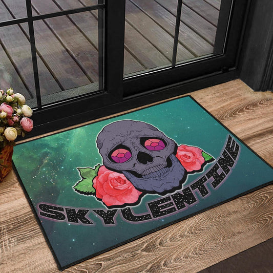 Valentine Door Mat - Skull With Roses Green Galaxy Sky Skylentine Door Mat Home Decor