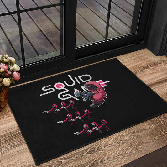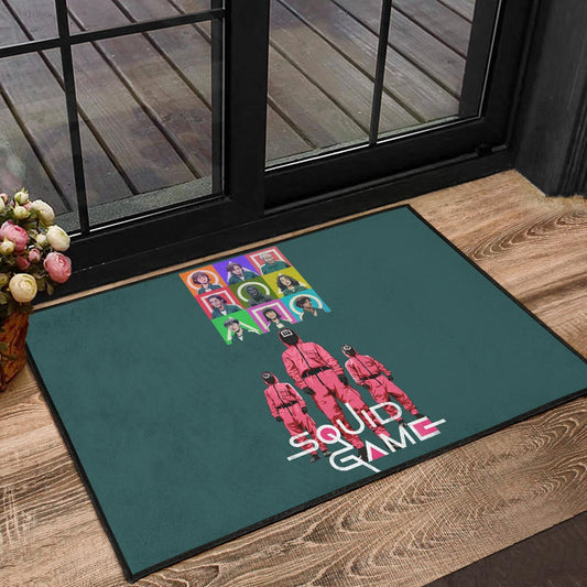 Squid Game Movie Door Mat Players Portrait With Black Masked Boss And Squid Worker Standing Door Mat Home Decor