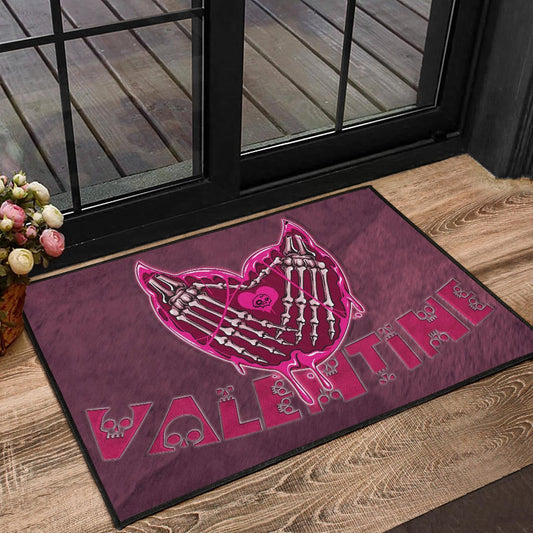 Valentine Door Mat Skeleton Hands In Melting Heart Valentine Pink Text Door Mat Home Decor NT121104
