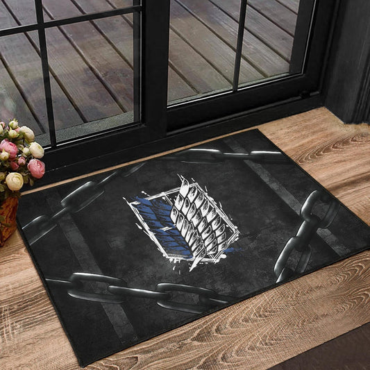 Attack On Titan Anime Door Mat - Wings Of Free Symbol Locked In Black Chains Door Mat Home Decor