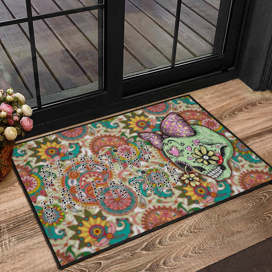 Valentine Door Mat - Drawing Floral Skull Blinding Valentine Door Mat Home Decor