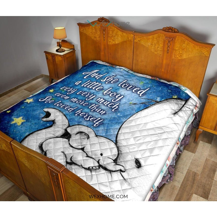 WEXHOME And She Loved Little Girl Elephant Mom Premium Quilt