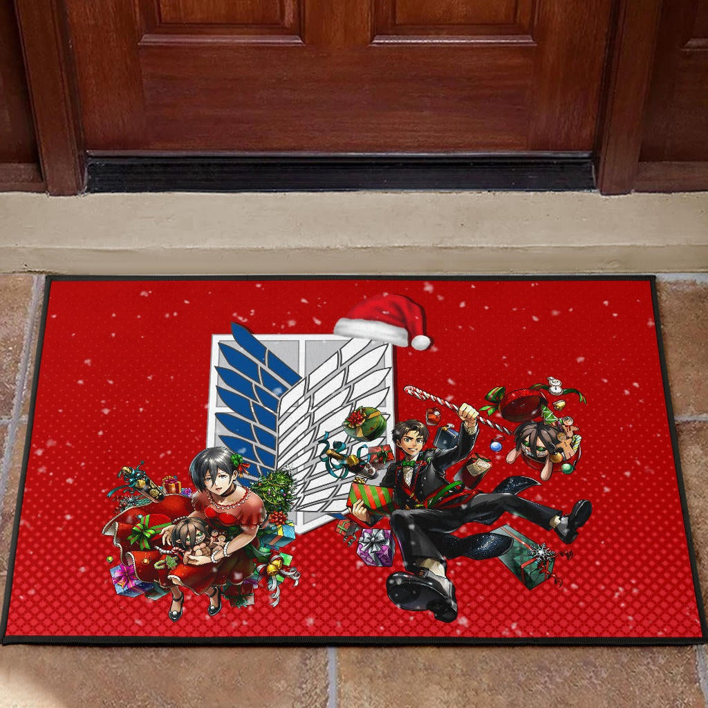 Attack On Titan Anime Door Mat - Merry Christmas Levi Ackerman Xmas Gifts Red Door Mat