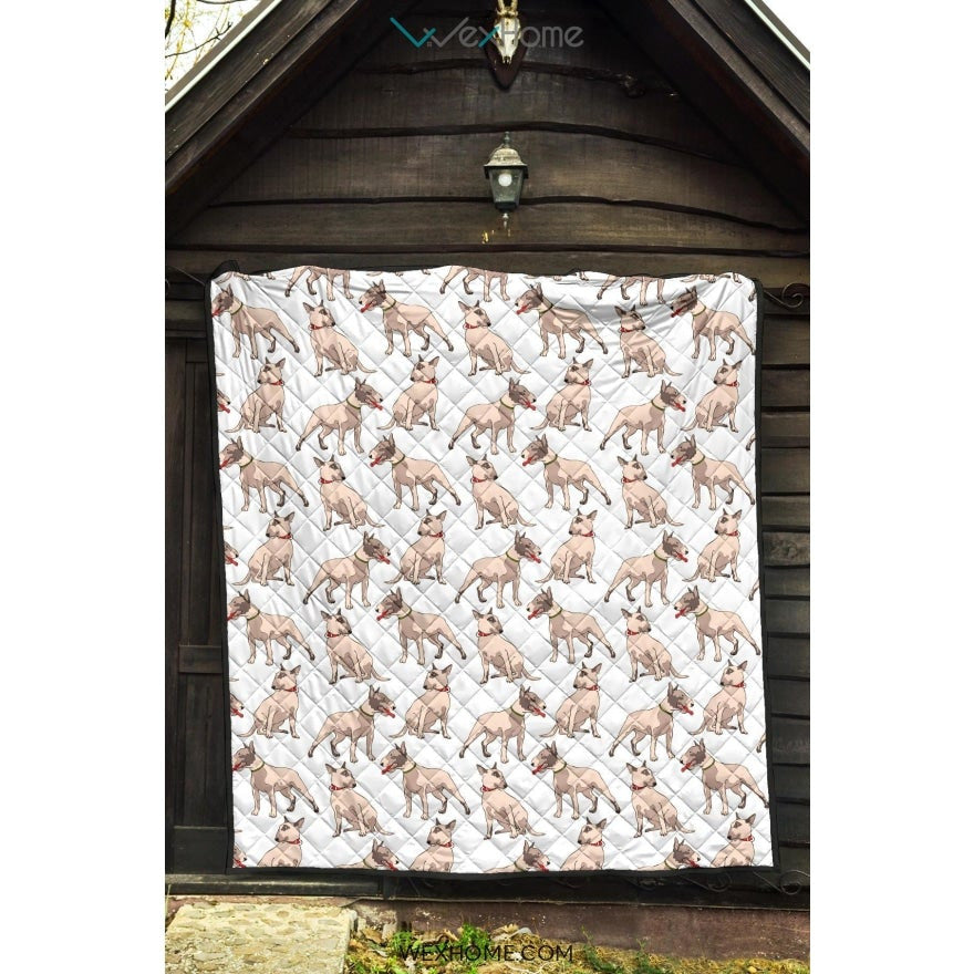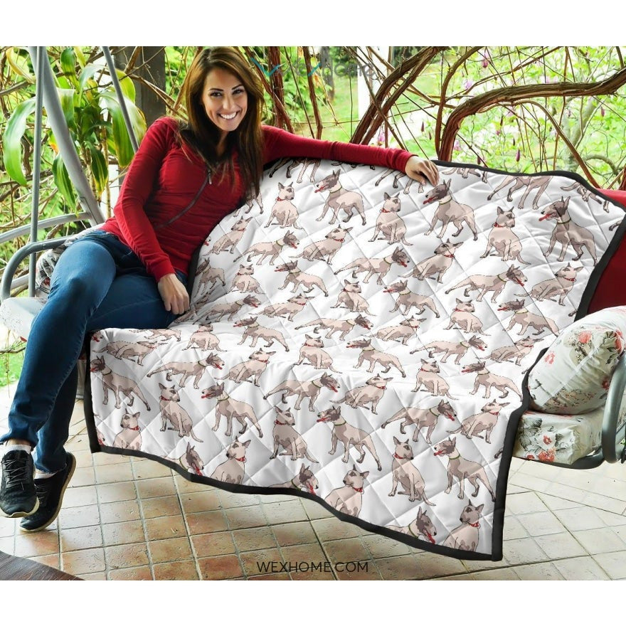 Bull Terrier Pattern Print Design 04 Premium Quilt is a uniqued design and limited item. It made to order, hand printed, and sewn with love in our factory.