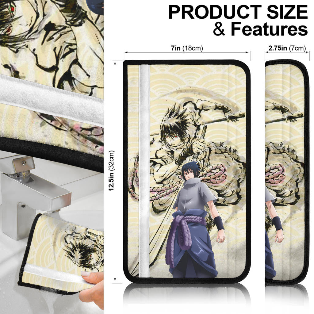 Naruto Anime Sasuke Uchiha Using Sword Black Painting Artwork Seat Belt Covers