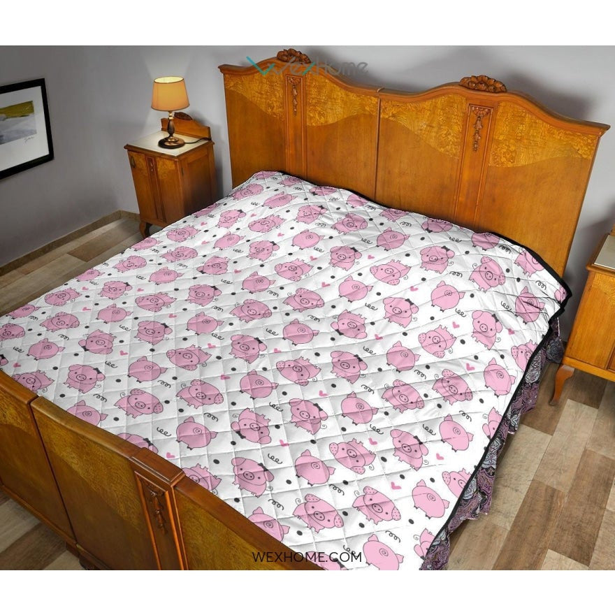 Pig Pattern Print Design 03 Premium Quilt is a uniqued design and limited item. It made to order, hand printed, and sewn with love in our factory.