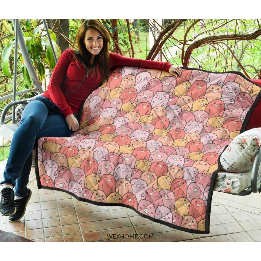 Pig Pattern Print Design 04 Premium Quilt is a uniqued design and limited item. It made to order, hand printed, and sewn with love in our factory.