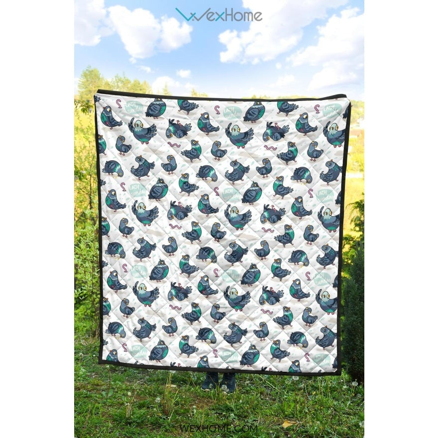 Pigeon Pattern Print Design 02 Premium Quilt is a uniqued design and limited item. It made to order, hand printed, and sewn with love in our factory.