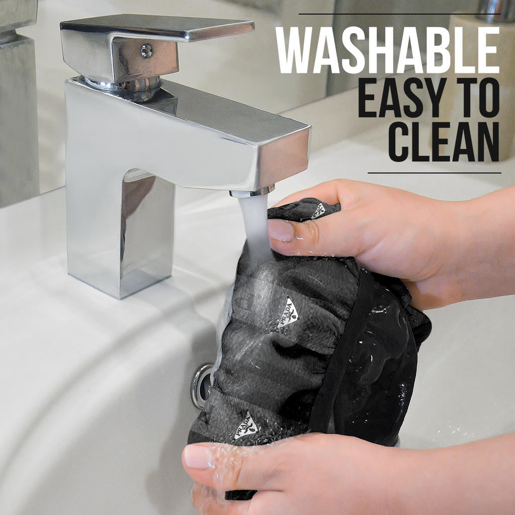 - Easy to clean! Rinse with cold water + mild detergent and let air dry.