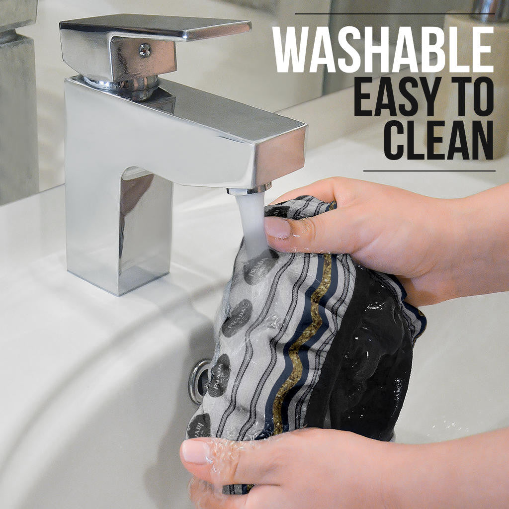 - Easy to clean! Rinse with cold water + mild detergent and let air dry.
