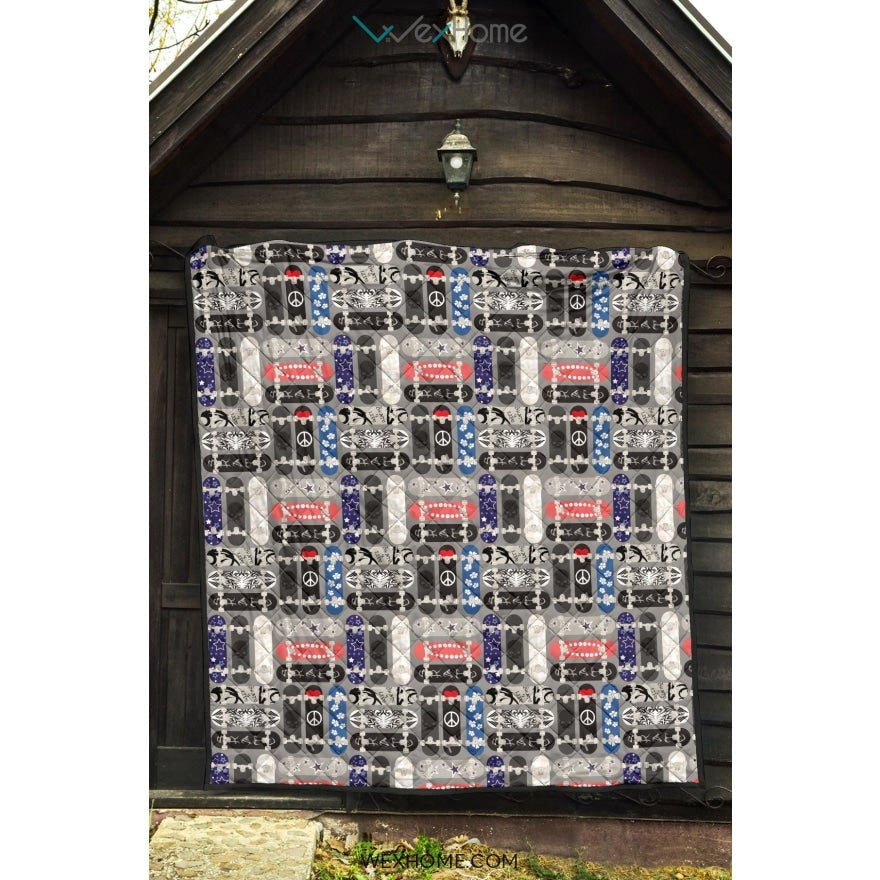 Skate Board Pattern Print Design 04 Premium Quilt is a uniqued design and limited item. It made to order, hand printed, and sewn with love in our factory.