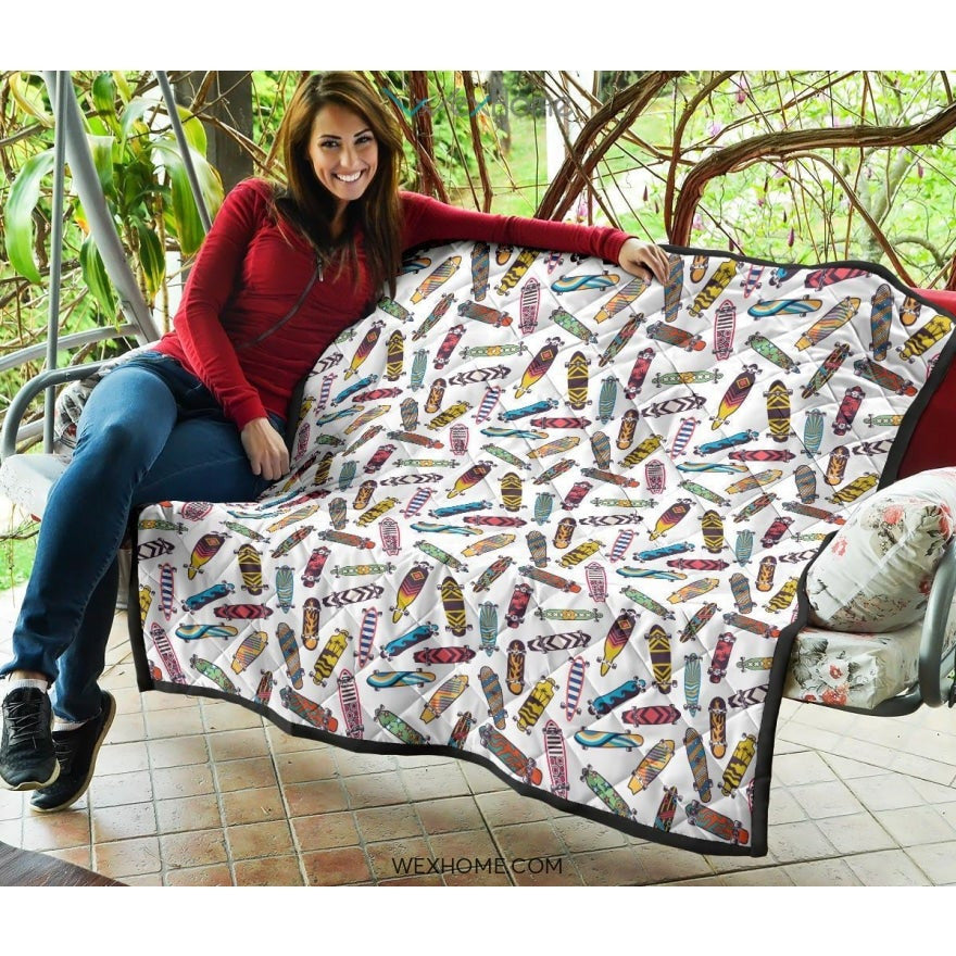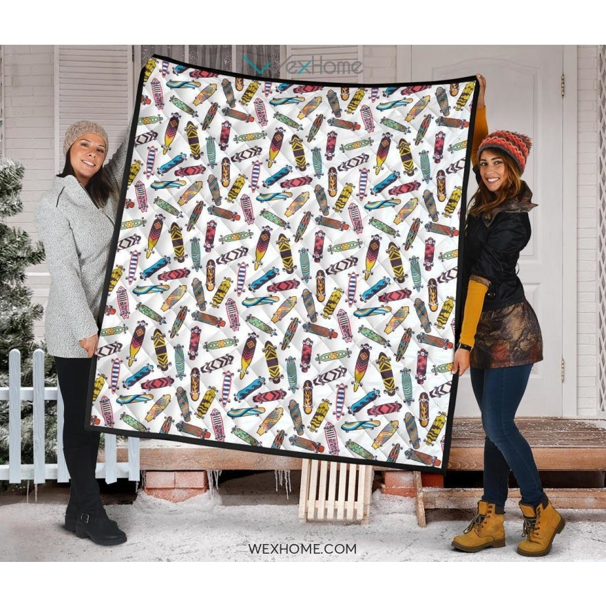 Skate Board Pattern Print Design 05 Premium Quilt is a uniqued design and limited item. It made to order, hand printed, and sewn with love in our factory.