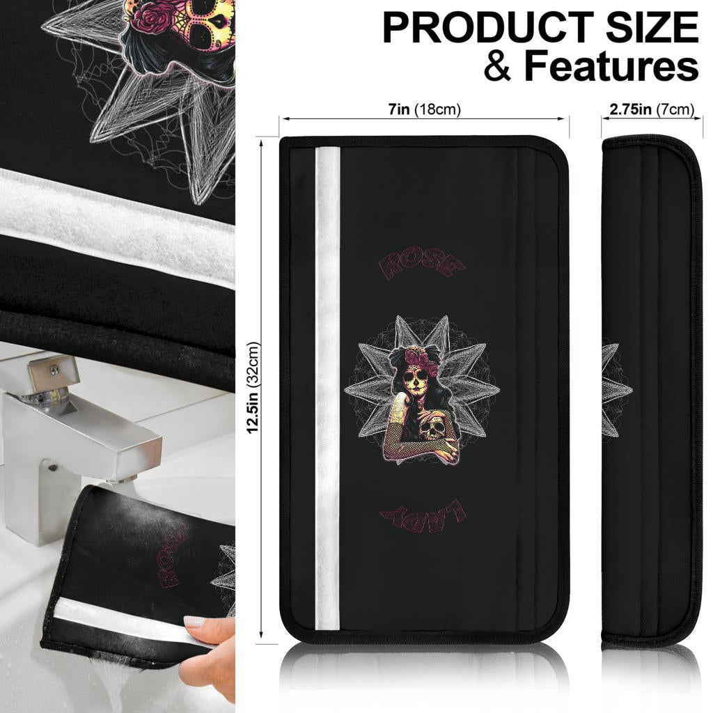 Skull Seat Belt Covers - Pretty Death Rose Lady Hug Skull Head Belt Covers