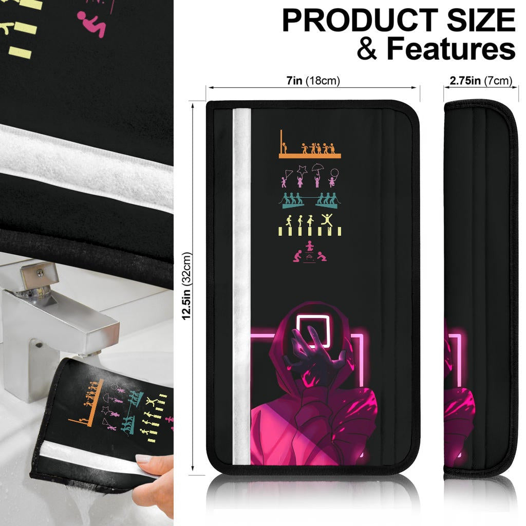 Squid Game Movie Seat Belt Covers - All Rounds Squid Workers Neon Minimalist Belt Covers