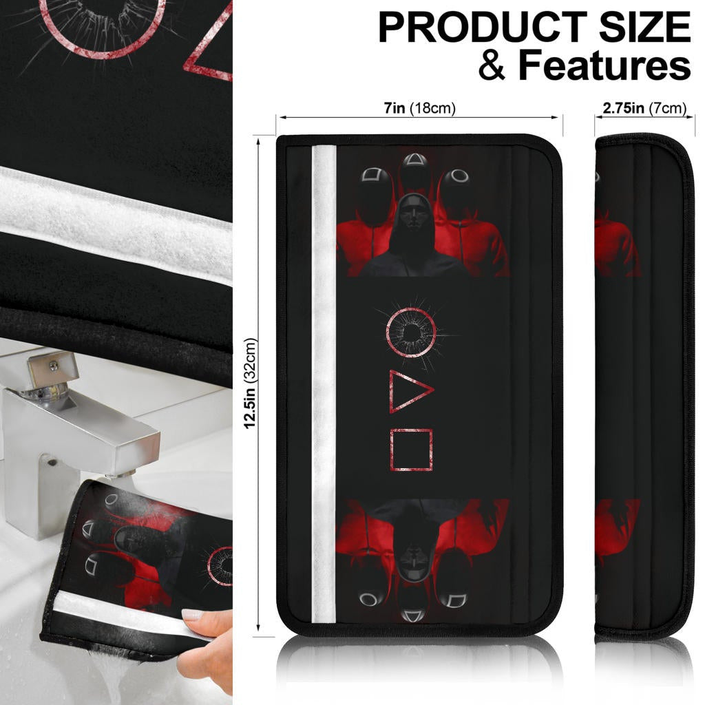 All of our Squid Game Movie Seat Belt Covers - Squid Worker With Masked Boss Round Square Triangle Belt Covers NA112607 are custom-made-to-order and handcrafted to the highest quality standards.
