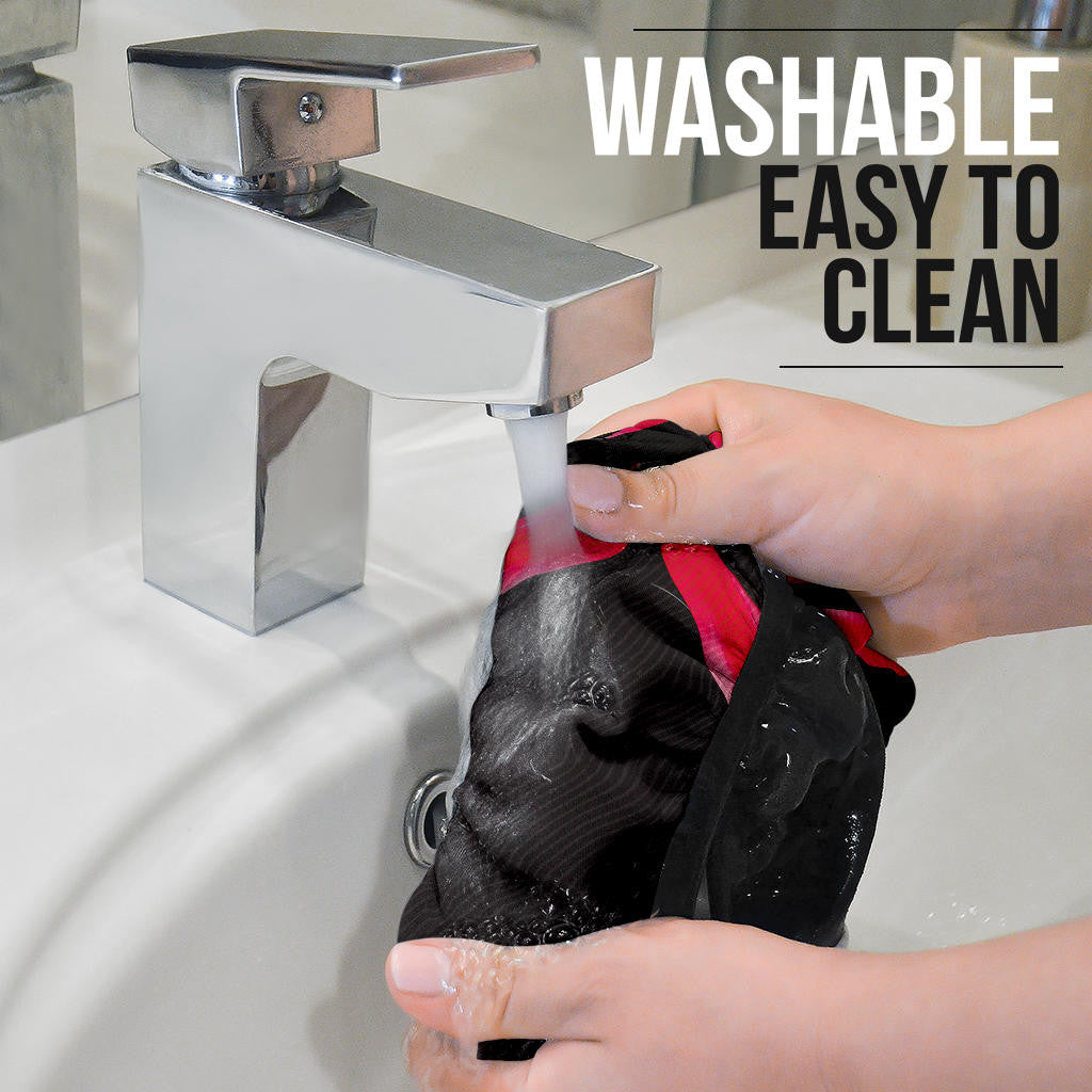 - Easy to clean! Rinse with cold water + mild detergent and let air dry.
