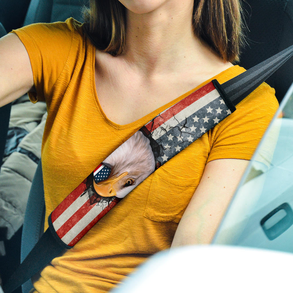 US Independence Day Bald Eagle Breaking Though US Flag Seat Belt Covers