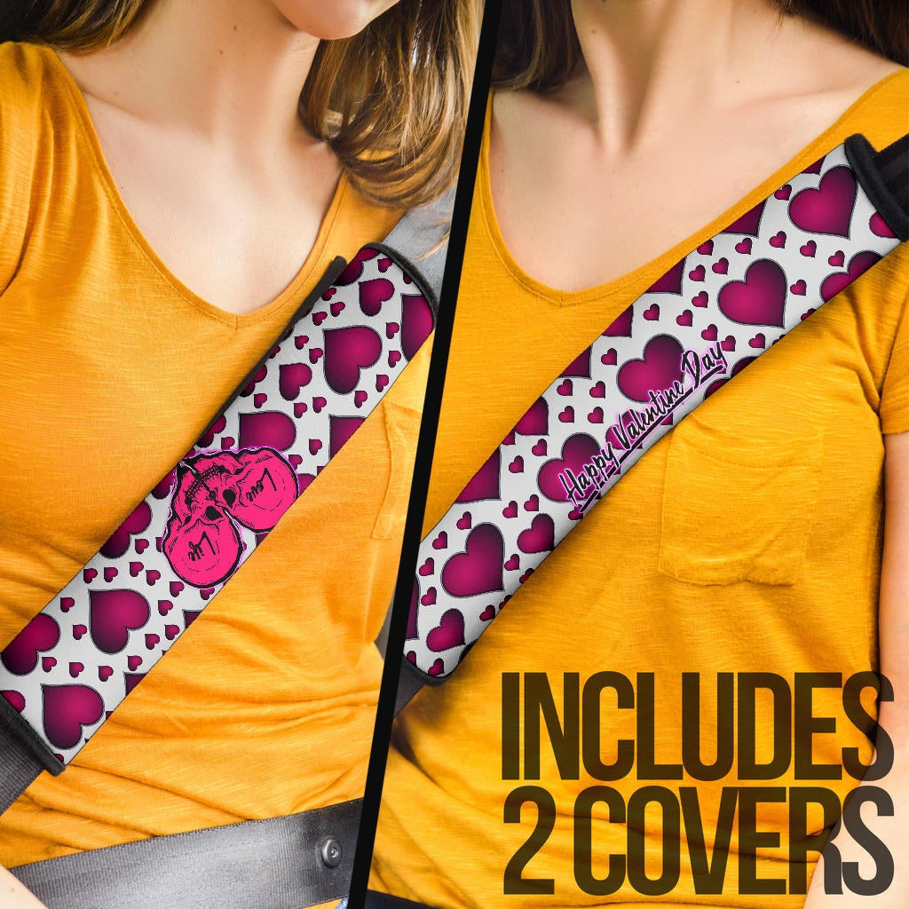 Valentine Seat Belt Covers Couple Skull Love Life Happy Valentine Day Pink Heart Patterns Belt Covers