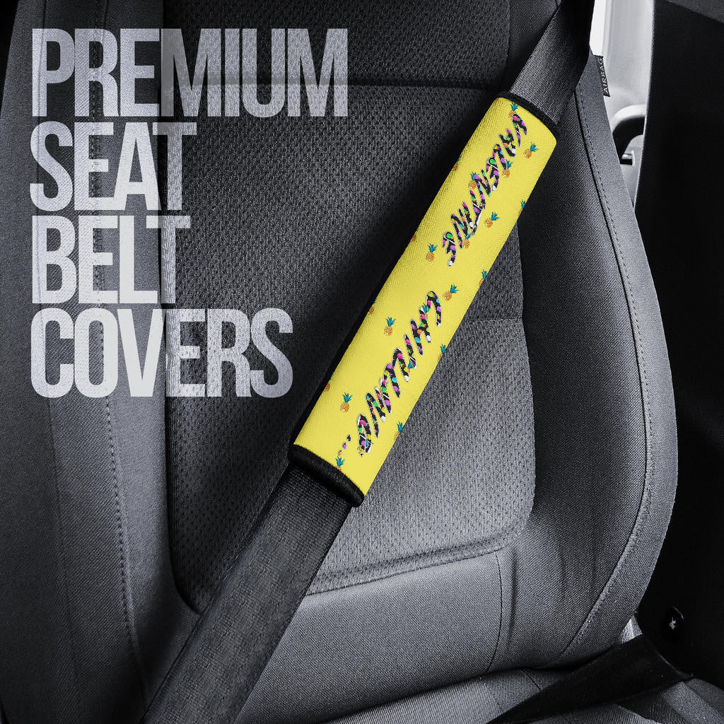 Valentine Seat Belt Covers Pineapple Skull Wearing Glasses Valentine Chilling Yellow Patterns Belt Covers