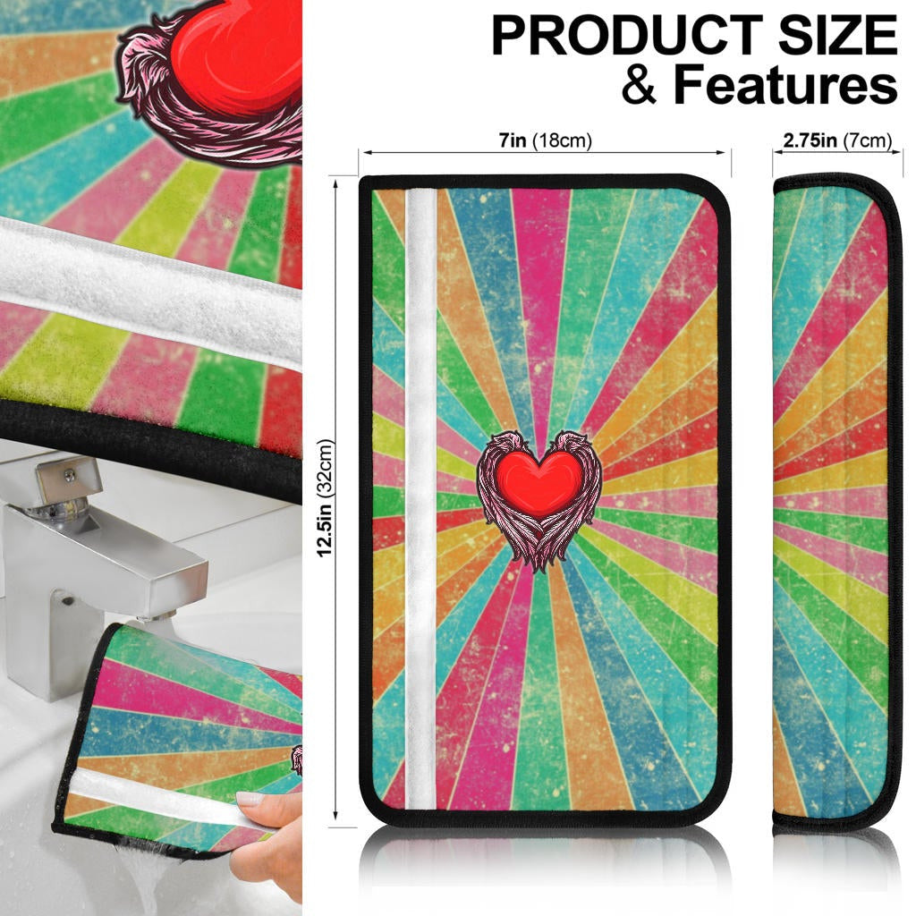 Valentine Seat Belt Covers Red Heart With Wings Flight Rainbow Vintage Background Belt Covers