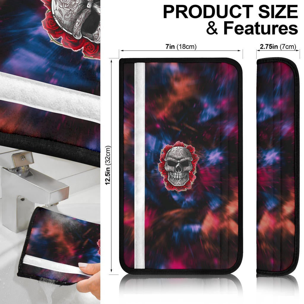 Valentine Seat Belt Covers - Red Rose Tattooed Skull Deep Love Belt Covers