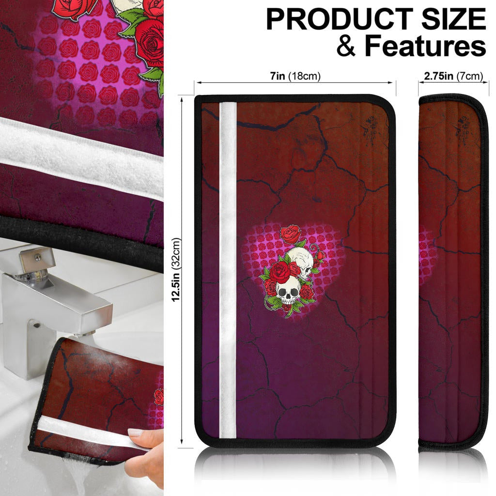 Valentine Seat Belt Covers - Skulls With Roses Flower Heart It's Valentine Belt Covers